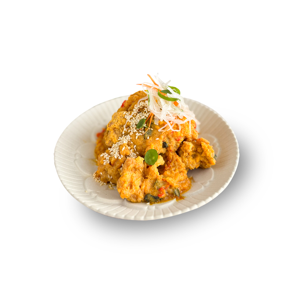 Udon served with Katsuo Cream Sauce, Prime Chicken, Nori Crispy and Mushroom Champignon.
